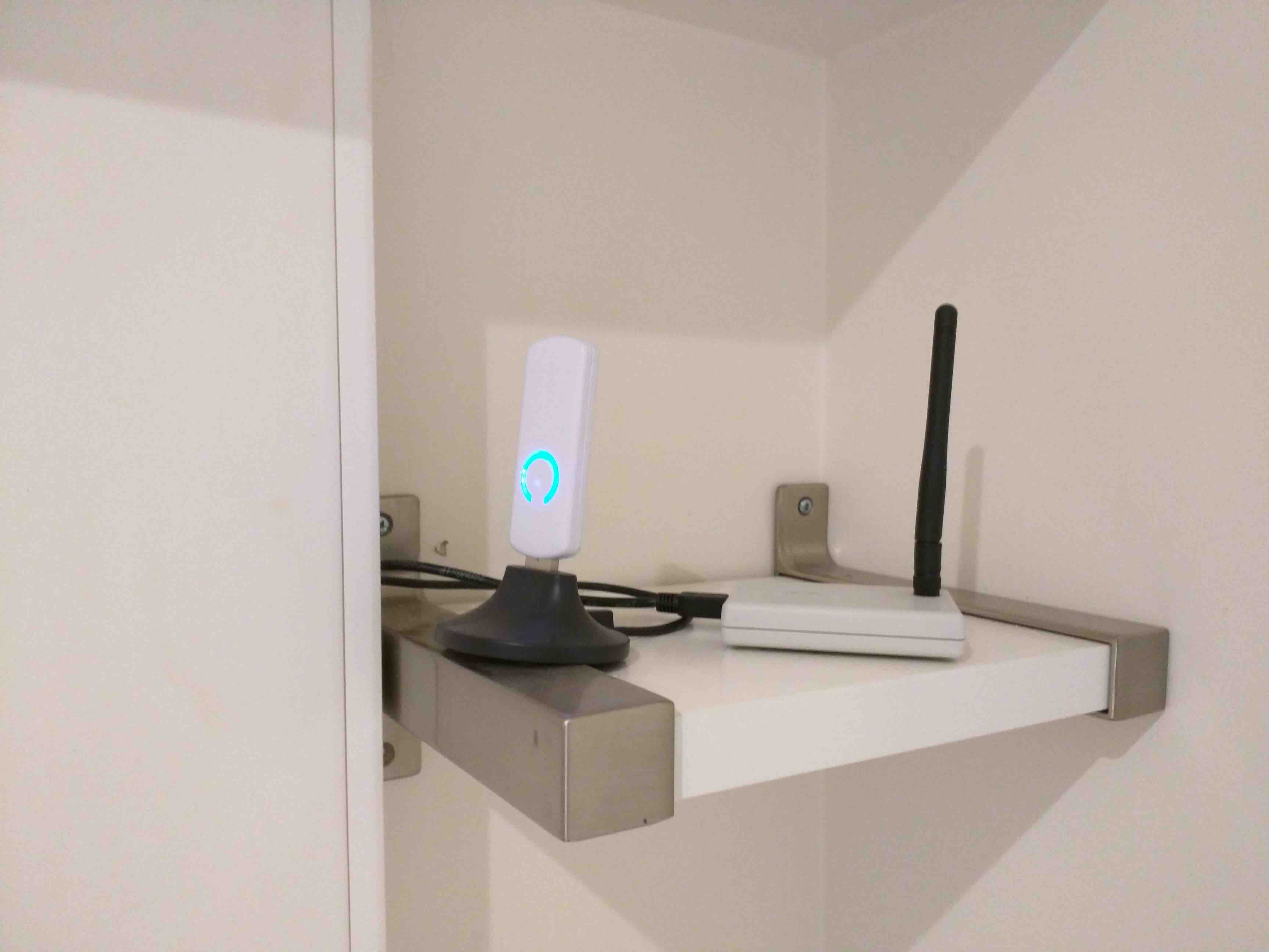 Reste à placer le ou les dispositifs d'émission/réception. J'ai une clé z-stick GEN5 et un transceiver USB Rfxcom que j'ai acheté sur Amazon. Bien entendu on ne peut pas les glisser dans le tableau électrique. J'ai donc ajouté des rallonges USB et je les ai placés en hauteur en faisant passer les câbles dans la goulotte qui distribue le courant dans la maison.